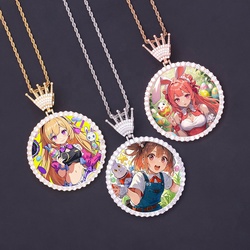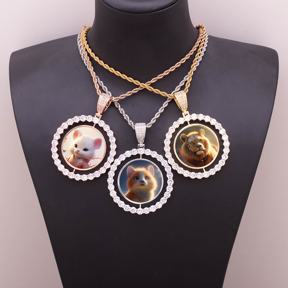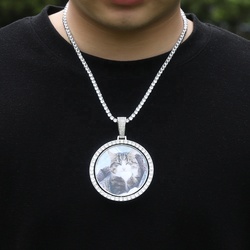 68MM HipHop corona XL CZ cornice rotonda cornice di memoria ciondolo cerchio ghiacciato sublimazione Charm foto collana di zirconi cubici gioielli