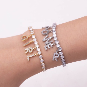 Braccialetti da Tennis con lettere iniziali di lusso alla moda con ciondolo in zirconi cubici con ciondolo da donna con ispirazione Hip Hop